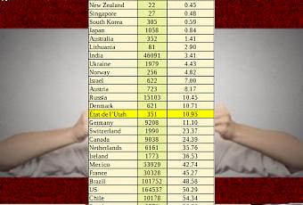 Par exemple, en Utah où j’habite, il n’y a que 3 206 000 habitants, avec 351 décès causés par le Covid-19, ce qui porte notre taux à 10,95 décès pour 100 000 habitants, un chiffre assez proche des pays assez bien classés comme le Danemark et l'Allemagne.