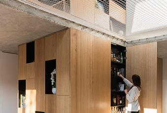 Jusqu'à présent, le volume central en double hauteur de cette maison près de Bordeaux était inutilisé. Lors de la rénovation complète de la maison par Martins | Afonso atelier de design , un filet de mezzanine est venu prendre place dans cet espace de vie, laissant passer non seulement la lumière mais créant aussi une nouvelle fonctionnalité au lieu. Au choix selon les moments de la journée, le filet devient l'espace de jeu des enfants, idéal pour une pause sieste familiale ou encore salle de cinéma ?