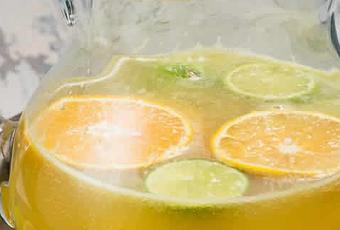 Ensuite goûtez et ajoutez du sirop au citron refroidi selon le goût désiré et faites garnir avec les tranches d'oranges et de citrons.