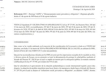 Afin de ralentir la contagion au sars-cov-2, le président Alberto Fernández s’est résolu à publier aujourd’hui au Bulletin Officiel un décret qui interdit tout type de réunion privée dans tout le pays, y compris au domicile des particuliers. Terminés les anniversaires, aucun cercle d’amis ou de famille autour d’un mate, pas d’asado même le dimanche. Jusqu’au 16 août, chacun reste chez soi et n’en sort, obligatoirement masqué dans Buenos Aires et ses alentours, que pour aller travailler (si son activité est essentielle et ne peut être exercée à distance) et pour se ravitailler.