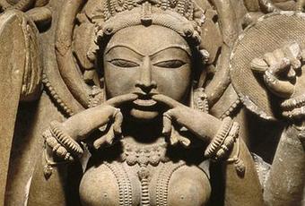 she becomes peaceful and the Divine (clearly) arises."