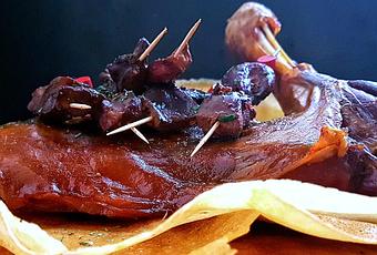 - Servir l'épaule d'agneau chaud sur des feuilles de pastilla dorées accompagné de brochettes de coeur.