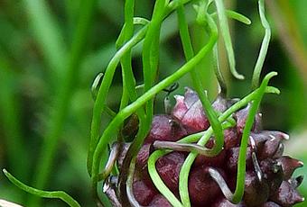 Allium vineale (Ail des vignes) : plante à odeur d’ail ; feuilles engainantes en gouttière ; inflorescence en ombelle terminale ; fleurs à 6 tépales rose-verdâtre portés par un pédoncule épais, nombreux bulbilles parfois sans aucune fleur dans l'ombelle, spathe formée d'une seule bractée. Pelouses, rocailles, prairies sèches, abords des habitations, ballast