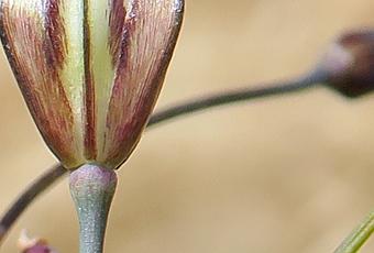 Allium oleraceum (Ail des champs) : plante à odeur d’ail ; feuilles engainantes canaliculées ; inflorescence en ombelle terminale ; fleurs à 6 tépales blanc-rosâtre portés par un long et fin pédoncule, nombreux bulbilles, spathe formée de 2 longues bractées. Pelouses, rocailles, prairies sèches, abords des habitations, ballast