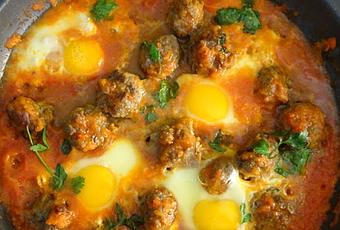 Ajoutez le persil et la coriandre dans la sauce tomate (garder un peu pour la garniture), ajoutez les boulettes de viande et laissez mijoter pendant encore 5 minutes jusqu'à ce qu'elles soient bien cuites