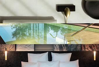 Pour ce qui est de la partie wellness du Château de Vignée, les architectes se sont inspirés du spa que suisse Peter Zumthor a construit dans les Alpes. Le toit du spa est traversé par un bloc sauna massif avec vue sur la Lesse. Les clients en cure peuvent aussi trouver une détente complète dans le hammam, le sauna finlandais et un infinity pool avec jets massants. De grandes baies vitrées donnent sur un solarium avec chaises longues et un bassin d’eau froide qui évoque les clapotis de la rivière qui borde le domaine.