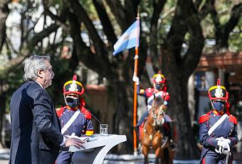 Quelques heures avant que les durs de l’opposition se déchaînent avec leurs bagnoles autour de l’Obélisque, en hurlant contre la réforme judiciaire et les mesures contre l’épidémie, le président Alberto Fernández a pris part à l’hommage que le Régiment des Grenadiers à cheval rend tous les 17 août au Père de la Patrie, qui est aussi son fondateur, le général José de San Martín. Le président s’est rendu à la caserne principale de ce régiment prestigieux qui assurent les services de sécurité et d’honneur auprès du chef de l’État et des palais nationaux : il a présidé la cérémonie militaire qui s’est tenu cette année sur la place d’armes régimentaire alors que l’hommage a traditionnellement lieu sur Plaza San Martín au pied de la statue équestre du général.