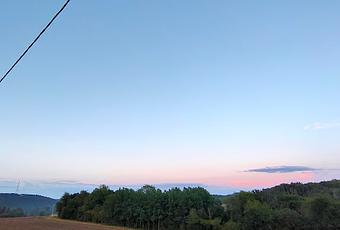 J’ai salué les vaches, les pâtures, les chaumes, les parcelles morcelées de foret cultivée, le vallon, la colline, les traces des avions, l’étoile du berger, le panneau de la commune, puis, je suis rentrée.