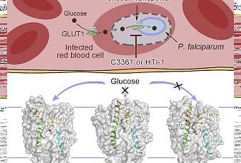 Les espèces du genre Plasmodium, agents causant la malaria, reposent sur le glucose pour leur ressource en énergie au cours du stade du repas de sang. L’inhibition de la captation de glucose représente donc une stratégie potentielle pour le développement des médicaments antimalariques. Ici, nous présentons les structures cristallines du PfHT1, l’unique transporteur d’hexoses dans le génome des espèces du genre Plasomdium, à des résolutions de 2.6 Å en complexe avec le D-glucose et de 3.7 Å avec un inhibiteur modérément sélectif, C3361. Bien que les deux structures montrent des conformations obstruées, la liaison avec C3361 induit des réarrangements marqués qui résultent en une invagination additionnelle. Cette induction d’une zone de liaison à l’inhibiteur représente une opportunité pour une conception rationnelle d’inhibiteurs PfHT1-spécifiques. Parmi nos dérivés de C3361 désignés, plusieurs ont montré une inhibition améliorée de PfHT1 et d’un potentiel cellulaire contre P.falciparum, avec une sélectivité excellente pour le GLUT1 humain. Ces résultats représentent une preuve de concept pour le développement de chimiothérapies antimalariques de nouvelle génération en ciblant simultanément les sites orthostériques et allostériques de PfHT1. Xin Jiang, et al, dans Cell, publication en ligne en avant-première, 28 août 2020