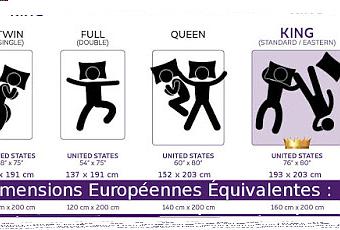 Pendant plus de quatre décennies de vie conjugale en Amérique, nous avons toujours réussi à dormir dans un lit de taille « Queen », soit 152 cm de large et 203 cm de long, et étions assez satisfaits, jusqu'à ce que nos enfants et certains de nos amis essayent de nous convaincre qu’il était temps de passer à la taille supérieure, celle que l’on appelle « King », de la même longueur mais considérablement plus large (193 cm en largeur, soit 41 cm d’espace supplémentaire).