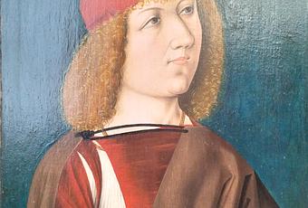 Ce panneau formait le couvercle d’un coffre à héritage, qui contenait le buste en marbre de Angelo Probi, ambassadeur du Roi de Naples à Venise, mort en 1474. On suppose que le portrait représente son fils éploré.