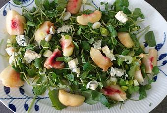 Cresson1 ciboule coupe en rondelles2 pêches100 g de fromage bleuPour la vinaigrette :