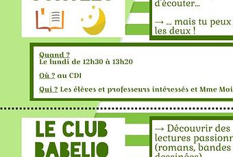 J'ai préparé des affiches pour les différents ateliers que je met en place au CDI à partir de la semaine prochaine : sieste contée, club Babelio pour les 6ème et club journal.