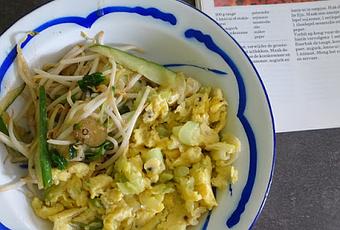 Battre les œufs avec 1 càc de sel, ½ càc de vetsin, ¼ càc de poivre et ½ càc d'huile de sésame