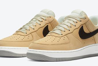Retour à Manchester ici pour une nouvelle paire dédiée à la ville, mais cette fois-ci sans collaborateur. Pour cette Nike Air Force 1 Manchester Bee, Nike s’inspire de l’abeille, l’un des symboles historiques de la ville. La silhouette se révèle donc mielleuse avec un upper tan, oscillant entre cuir et suede. Le Swoosh apparaît en cuir marron pour contraster avec la couleur de l’upper, tout comme la languette apparaissant sail sur un mesh alvéolé. Du côté des détails, l’abeille est cousue sur le côté extérieur du talon, quant à l’intérieur on retrouve un nouveau print alvéolé frappé dans le suede.