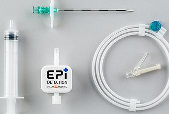 Ce dispositif a été mis au point pour détecter avec précision l’espace épidural. Lorsque l’aiguille atteint l’espace épidural, elle détecte le changement de pression grâce à capteur numérique, qui l’affiche en signale lumineux bleu afin que l’utilisateur soit alerté.