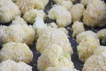 Trempez la tête du fleuron dans le beurre fondu puis enrobez-la dans la chapelure après dans le parmesan.