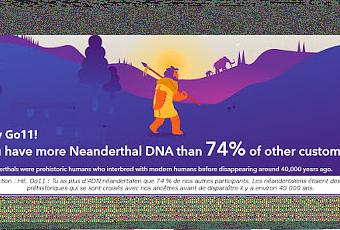 Comme celle-là qui m'a apprit que j'ai hérité d'une petite dose d'ADN de mes ancêtres néandertaliens. En fait, j'ai plus d'ADN de Néandertal que 74% des autres participants dans leur base de données. Si vous ne vous en souvenez pas, les Néandertaliens étaient des humains préhistoriques qui se sont croisés avec nos ancêtres avant de disparaître il y a environ 40 000 ans.