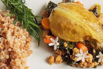 J'ai accompagné le tout d' épeautre, de roquette et de fleurs d'ail.