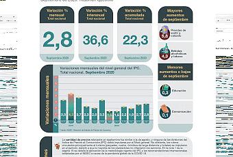 L’INDEC a publié hier les chiffres des prix à la consommation de septembre. Ils ont augmenté de 2,8 % par rapport au mois d’août (où le taux était de 2,7). On peut donc en conclure que l’inflation, malgré la crise économique et le ralentissement des activités à cause de la pandémie, est en voie de stabilisation.