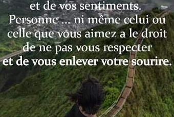 Ayez toujours la force et le courage de faire sortir de vos vies ceux qui se jouent de vous et de vos sentiments. Personne, ni même celui ou celle que vous aimez, n'a le droit de ne pas vous respecter et de vous enlever votre sourire.