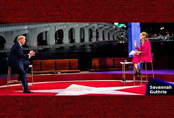 Quand ce fut le tour son adversaire, nous avons été agréablement surpris de découvrir que Savannah Guthrie, l’animatrice, était la première personnalité américaine à ne pas craindre d’affronter - et d’écraser - ce monstre qu’est Trump.