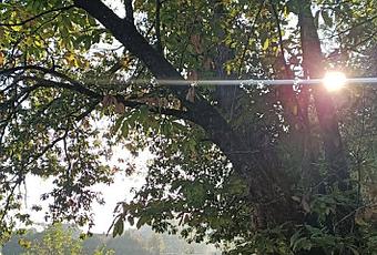 Un départ pour un autre chemin. Celui-ci mène à de grands chênes, situés derrière le mur d'une grande propriété. Leurs énergies se manifestent très rapidement. Nos doigts fourmillent. L'occasion de faire quelques mouvements de qi gong et entrer en résonance avec eux.