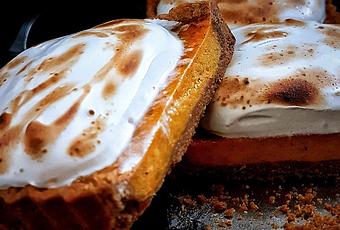Une bonne tarte au potimarron délicieusement parfumée à la cannelle avec une pâte sablée au spéculoos surmontée de sa belle couche de meringue comme un nuage.. Un vrai régal!!