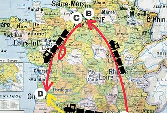 Pour me rendre à Bordeaux depuis Marseille, j'ai aujourd'hui le choix entre vendre un rein pour acheter un billet de train ou voyager en avion à bas prix et exploser mon bilan carbone. OUISncf, le voyagiste qui annule et remplace le service public, me propose un premier TGV qui me conduit à Paris-Gare de Lyon, à moi de trimballer ensuite mes bagages dans le dédale du métro entre Gare de Lyon et Gare Montparnasse pour attraper un deuxième TGV qui m'emmènera à Bordeaux. Quiconque a des notions de géographie notera l'absurdité du tracé du voyage le plus communément proposé (illustration, A > B > C > D). Je préfère, pour ma part, le trajet le plus court, en Corail (Intercités) qui joint A à D sans passer par la capitale.