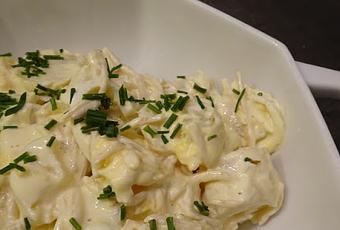 Il y a tant et tant de variétés de salades de pommes de terre, je les aime toutes et j'aime découvrir de nouvelles recettes. La pomme de terre est un des légumes les plus versatiles. Depuis quelques années des variétés se multiplient sur les étals, alors profitons en. Cette recette sort d'un magazine néerlandais auquel je suis abonnée et que je fais envoyer à l'adresse de ma sœur aux Pays-Bas puisque cela reviendrait trop cher de le faire envoyer en France. Elle a donc la primeur de découvrir les magazines que je récupère quand je vais aux Pays-Bas. Dans cette recette on parle de mayonnaise au yaourt qui se trouve partout dans le commerce là bas, je crois ne pas en avoir vu ici en France. Pas de problème, j'ajoute donc une bonne dose de yaourt grec à la mayo.
