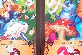 Incarnez l’un des célèbres personnages d’Alice au Pays des Merveilles : Le Chat de Cheshire, la Chenille ou encore les Jumeaux Tweedle et bien évidement Alice. Chaque personnage possède une capacité. Vous voilà invité/ée par la Reine de cœur au fameux goûter royal, elle sera donc toujours présente. Forte de caractère, elle décide d’inventer des lois auxquelles vous devrez vous plier.