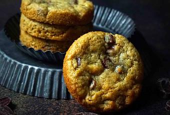 ½ blanc d'oeuf soit 15 gr1 jaune d'oeuf 20 gr1 cuil à café rase de bicarbonate de soude soit 3 gr140 gr de farine épeautre ou blé2 pincées de fleur de sel150 gr de chocolat noir et lait concassé ou chunk ou pépites de chocolat