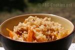 Mettez le riz dans le rice cooker, puis la sauce soja, le saké et le mirin. Ajoutez ensuite l’eau puis les carottes, le tofu et le poulet.