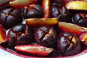 Dressez les figues dans des ramequins individuels. Versez dans le ramequin la sauce au vin. Ajouter les agrumes confits.