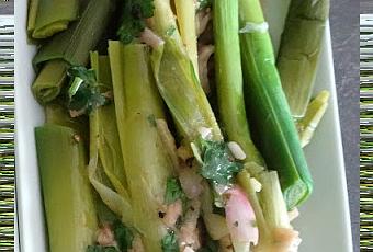 Retirer la ficelle et verser la vinaigrette sur les poireaux encore tièdes