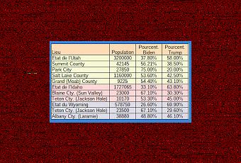 Cela m'amènerait à estimer que dans la grande agglomération de Park City, les électeurs ont choisi Biden à 3 contre 1 pour Trump ! Cela s'applique également aux stations de ski situées dans les autres états Républicains comme l'Idaho, le Montana et le Wyoming.