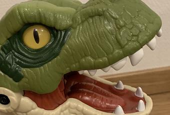- La manette permet de faire bouger la tête et le cou du dinosaure avant d’appuyer sur la gâchette pour faire claquer ses mâchoires