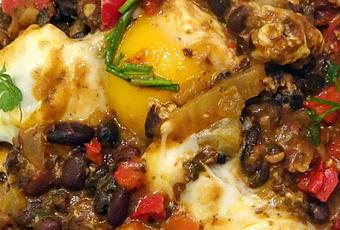 Creusez deux puits dans les haricots et cassez-y les œufs.