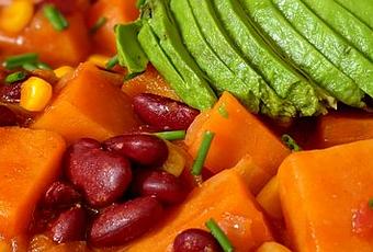 Les températures baissent et il commence à faire froid. Le confinement, le covid et l’absence de contacts humains rendent le climat encore plus froid. Je trouve qu’on a encore plus besoin de plats chauds et réconfortants. Je vous propose, aujourd’hui, un chili végétarien bien chaud et bien épicé. Sa préparation est des plus simples La quantité de piment est à la discrétion de chacun.Si vous n’aimez pas du tout, évitez.Ce plat peut se manger seul ou accompagné de riz, ce qui en fera un plat complet et suffisant.La combinaison patates douces, haricots rouges et maïs est toute nouvelle pour moi mais la découverte et le mélange de saveurs sont des plus agréables.Vous trouverez d’autres versions de chili : iciSoyez prudents et prenez soin de vous.