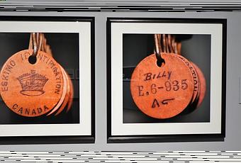 En visite au Winnipeg Art Gallery je découvre Barry Pottle - artiste inuit émergent du Nunatsiavut au Labrador (Rigolet) - qui dans son œuvre photographique cherche à mettre en lumière l'histoire vivante de la colonisation des Inuits. L'horreur de la déshumanisation en simple numéro pour nommer, identifier les Inuits et surtout les assimiler ensuite... L'œuvre présentée au Musée représente l'étiquette d'identification des esquimau. Ces étiquettes, ou disques, destinés à être ... portés par tous les Inuits, ont été développés aux fins du recensement par le gouvernement canadien à partir des années 1940. Le numéro sur le disque a été enregistré avec le nom de chaque Inuk. Les Inuits devaient porter les étiquettes ou mémoriser les chiffres. Dans son œuvre Pottle capture la nature déshumanisée des disques tempérée par les efforts des propriétaires d'étiquettes pour les personnaliser avec leurs propres noms, en anglais ou en inuktitut. Acte de résistance.