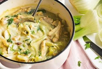 Poulet au fenouil et pommes de terre , un délice pour votre dîner ce soir , vous y trouvez ici la recette la plus facile pour la réaliser chez vous à la maison.