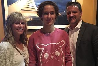 Elliot Lareau en compagnie de ses parents Sylvie et Sébastien – Crédit photo: Hockey Students