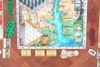 Dès la deuxième manche vous mélangerez les tuiles Nil que vous poserez sur les emplacements correspondants.