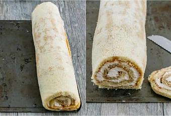Dérouler le biscuit puis imbiber-le du café fort et étaler les 3/4 de la crème.