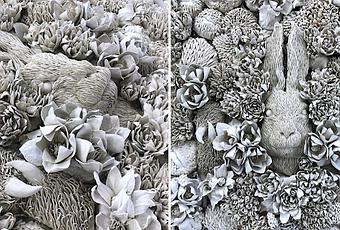 Melis Buyruk est une artiste contemporaine qui réalise des sculptures en porcelaine. Ces dernières sont assez impressionnantes : sur plusieurs mètres carrés elles fourmillent de milliers d’éléments inspirés de la nature, desquels émergent discrètement des animaux et des attributs humains. Ses œuvres monochromes invitent le spectateur à s’immerger complètement en se perdant dans les détails, découvrant des éléments nouveaux à chaque fois. En juxtaposant des animaux et des parties d’anatomie humaine dans ses œuvres, l’artiste tente de démanteler la hiérarchie des espèces et de rejeter la supériorité de l’homme.