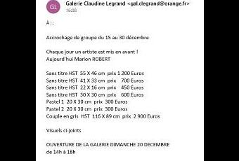 Galerie Claudine Legrand – 15/30  Décembre  2020  Exposition Marion RobertGalerie Claudine Legrand – 15/30  Décembre  2020  Exposition Marion RobertGalerie Claudine Legrand – 15/30  Décembre  2020  Exposition Marion Robert