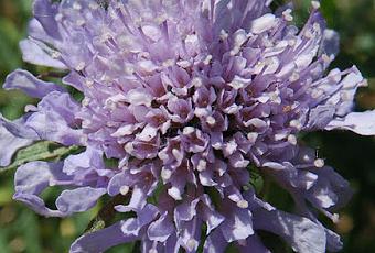 Knautia arvensis (Knautie des champs) : herbacée très variable notamment sur la découpure des limbes foliaires ; tige dressée velue ; feuilles pennatifides ou entières ; inflorescence en capitule terminal au réceptacle hérissé de soies mais dépourvu de paillettes ; fleurs bleu-violacé, tubulaires à 4 lobes, fleurs périphériques rayonnantes, involucre court et surmonté de 4 dents inégales.