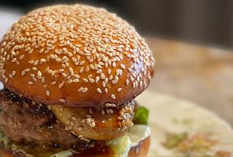 Dressez les 2 hamburgers pour les petits en commençant par le pain puis une cuillerée de sauce okonomiyaki, ajoutez par-dessus la romaine, puis le reste des échalotes confites chaudes, le steak, versez une seconde cuillerée de sauce, râpez le cheddar, ajoutez quelques traits de mayonnaise, terminez par le chapeau du pain burger. Pour les grands, répétez les étapes sans le fromage et en terminant avec l'escalope de foie gras sur le dessus.