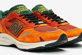 Au cœur de cette collection, on retrouve une New Balance 920 x SNS oscillant entre mesh, suede et cuir. L’upper de la 920 s’habille alors d’orange et de vert avec un contraste noir sur le heeltab en cuir. Le branding du retailer se positionne sur le deubré, ainsi que sur l’insole. La partie supérieure est achevée par plusieurs empiecements en 3M. Enfin, la semelle repose toujours et encore sur la très réussie semelle de la 990v3 teintée de beige.