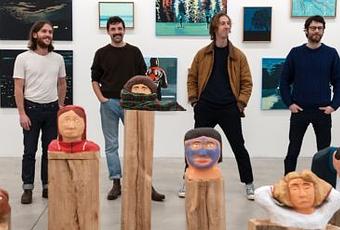 Le travail de peinture pour Yann, Gwendal et Jean est une prolongation de celui d'illustration. Comme illustrateur ils commentent le comportement humain en société avec souvent cette touche d'humour pour donner de la chair à l'idée. Leur regard de peintre sur les gens est lui, plus poétique avec une narration plus discrète qui laisse place à l'imaginaire. Par ellipse, Nicolas emprunte un chemin identique quand il change de médium en passant de l'animation à la sculpture naïve.